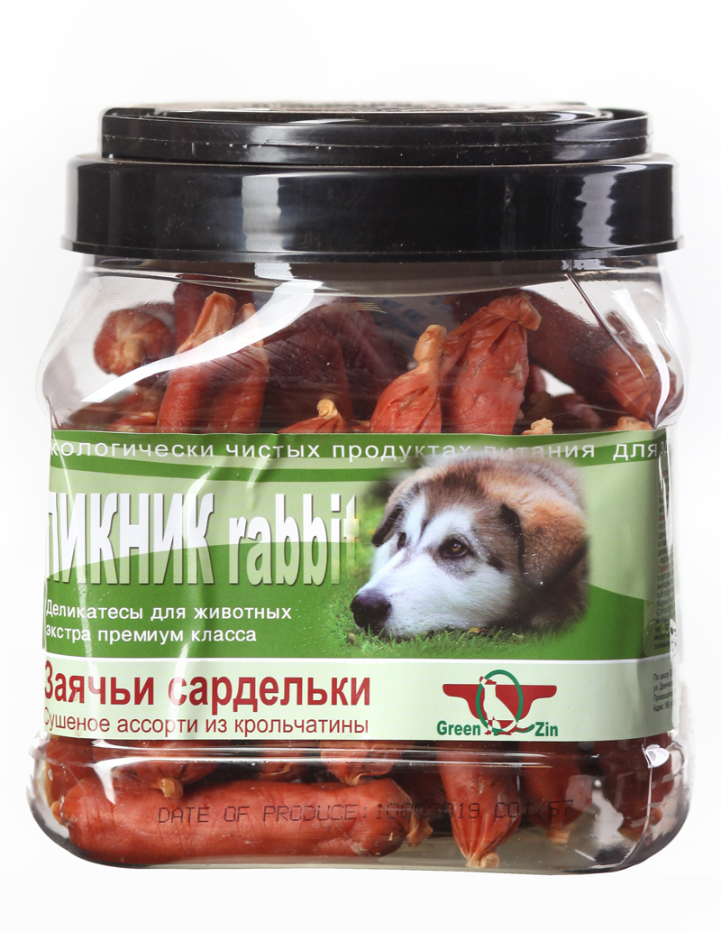 СОСТАВ: мясо кролика, субпродукты, кишка баранья, соль.